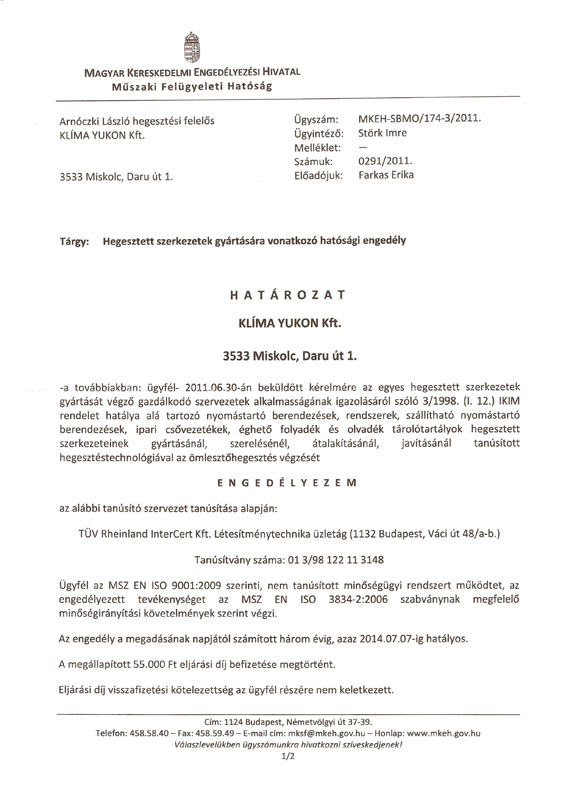 Hatósági engedélyek